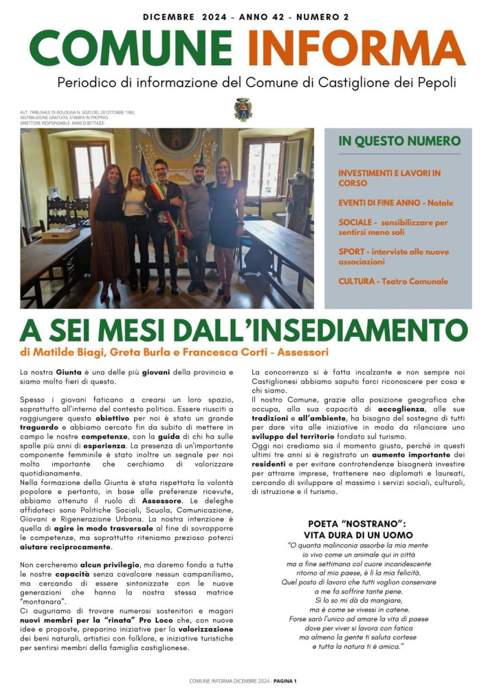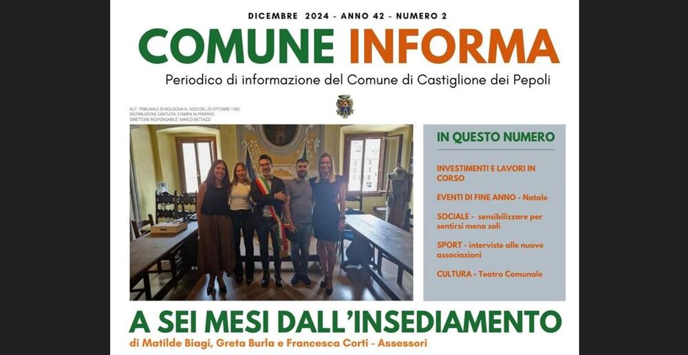 Castiglione dei Pepoli. Uscito il nuovo numero di Comune Informa, il primo della nuova amministrazione.