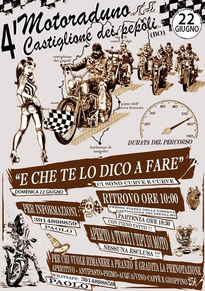 Con partenza e arrivo a Castiglione dei Pepoli, domenica 22 giugno Motoraduno “E che te lo dico a fare”. Aperto a tutti i tipi di moto