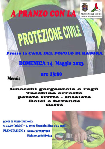 Domenica 14 maggio a Rasora di Castiglione dei Pepoli, pranzo dell’Associazione di Protezione Civile di Castiglione dei Pepoli.