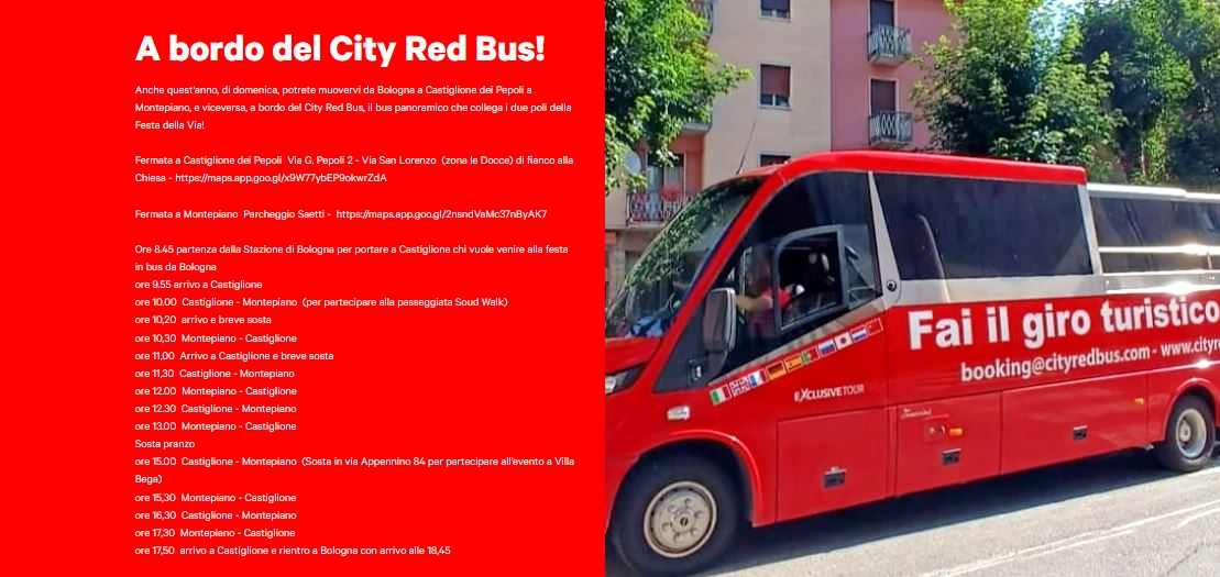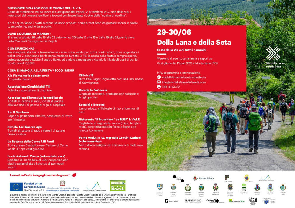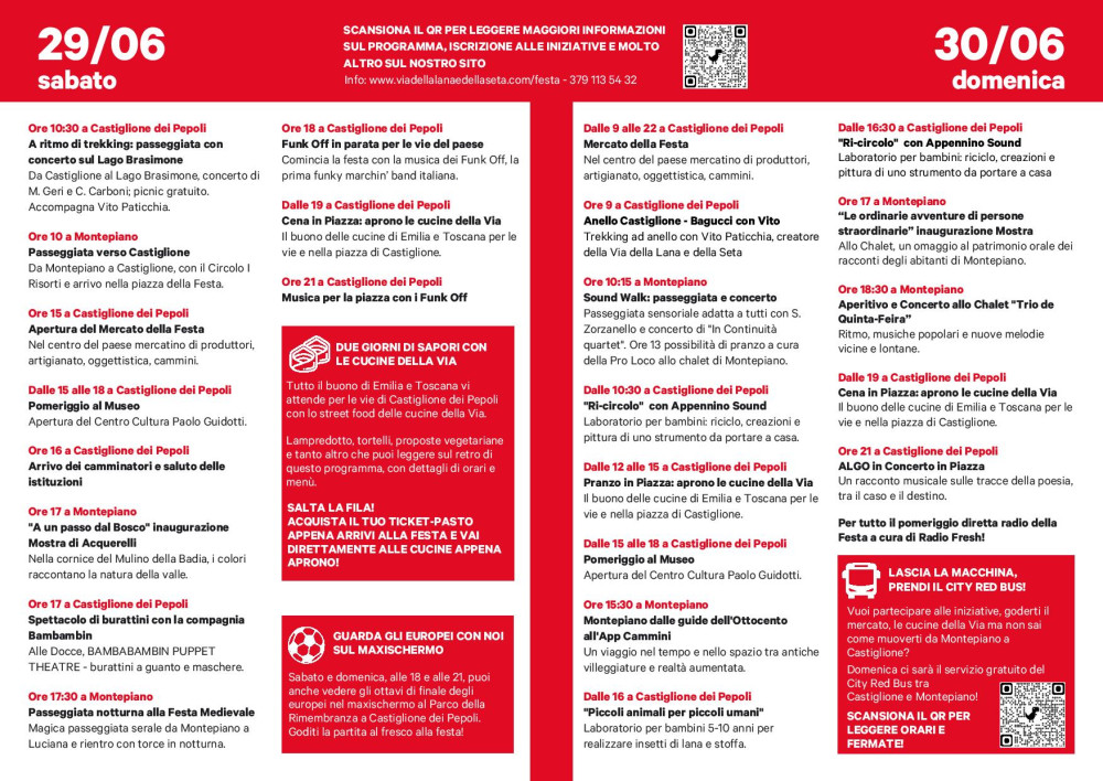 Festa della Via della Lana e della Seta. Programma completo, dove si mangia e quando, orario del City Red Bus che parte da Bologna fino a Montepiano e ritorno Vedi allegati
