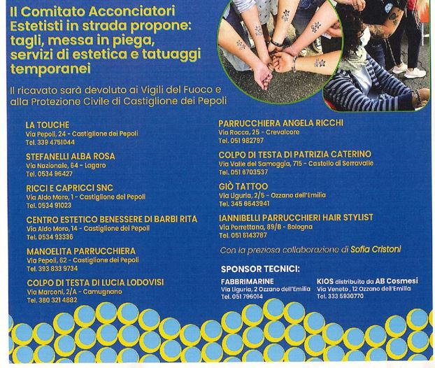 Il lavoro dei “Parrucchieri ed estetisti di strada“ del CNA, presenti in Montagna in Fiera a Castiglione dei Pepoli nella giornata di domenica 27, ha prodotto un incasso di € 1.820,00, soldi che sono stati donati alla Protezione Civile e ai Vigili del fuoco, come anticipato dalla CNA!!
