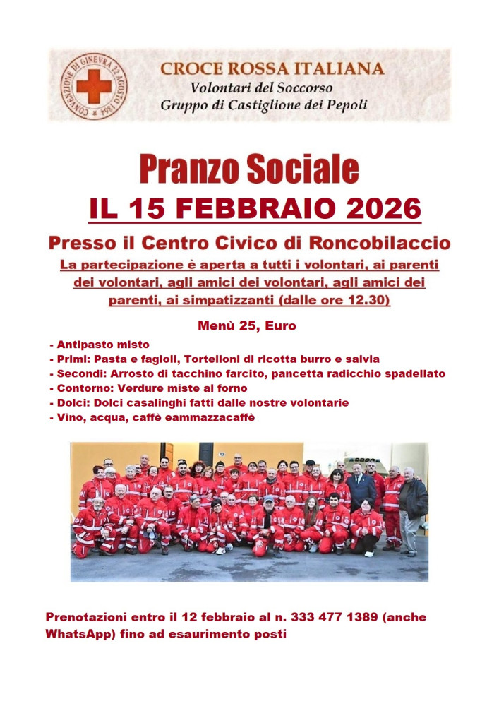 La Croce Rossa di Castiglione dei Pepoli organizza l’annuale “Pranzo Sociale” aperto anche a tutti i simpatizzanti