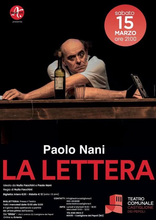 Teatro Comunale di Castiglione dei Pepoli. Sabato 15 febbraio “La Lettera” con Paolo Nani. Regia di Nullo Facchini