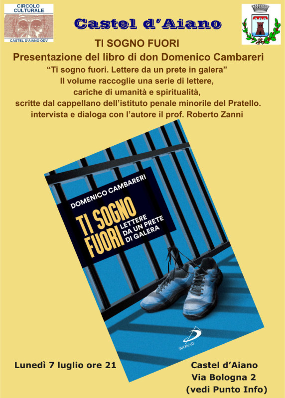 Castel d’Aiano inaugura la stagione culturale estiva con un evento significativo che unisce riflessione, testimonianza e dialogo: lunedì 7 luglio alle ore 21, presso la saletta di via Bologna 2, don Domenico Cambareri presenterà il suo libro “Ti sogno fuori”.