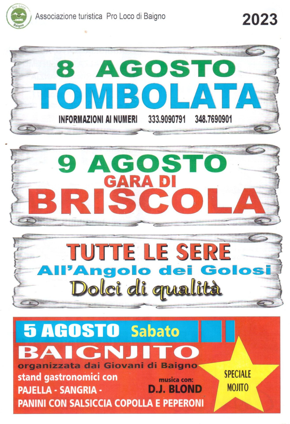 A Baigno di Camugnano la Proloco organizza “Tombolata” per l’8 e “Gara di briscola” il 9 agosto.