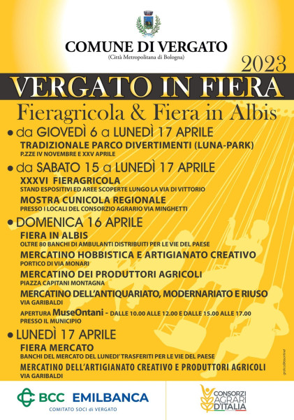 Da sabato 15 a lunedì 17 aprile 2023, torna a Vergato la XXXVI Fieragricola.