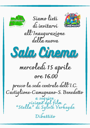 Nell’ambito del progetto “CinemApp: Cinema in Appennino”, mercoled’ 15 aprile alle ore 16.00, si terrà l’inaugurazione della nuova sala cinematografica dell’I.C. Castiglione – Camugnano – San Benedetto.