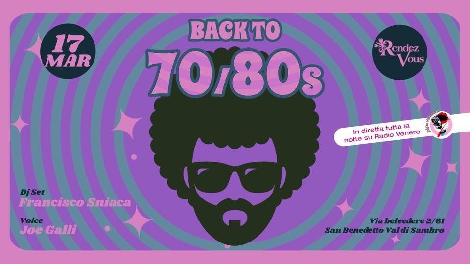 San Benedetto VdS. Rendez-Vous Via Belvedere, organizza serata “BACK TO 70/80’S”. Dalle ore 22,45 alle ore 03,30. Venerdì 17 Marzo