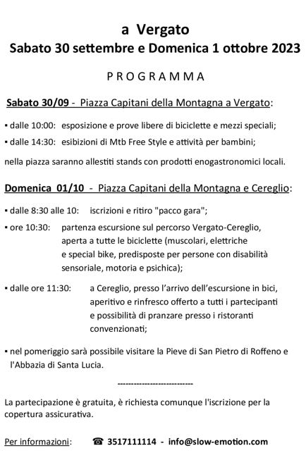 Due giornate inclusive dedicate allo sport all’aria aperta, al divertimento e all’enogastronomia nella meravigliosa cornice vergatese, precisamente tra il Capoluogo e la frazione di Cereglio.