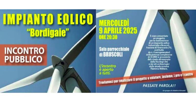 Bruscoli di Firenzuola. Incontro pubblico mercoledì 9 aprile per il nuovo progetto di impianto eolico industriale