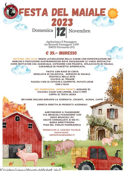 Bruscoli, domenica 12 novembre “Festa del Maiale” all’Agriturismo il Passeggere”
