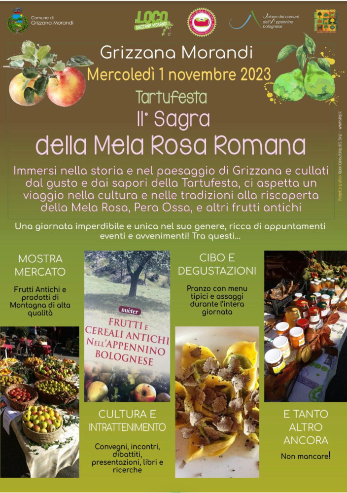 Grizzana Morandi. 1° novembre, Tartufesta e 2a Sagra della Mela Rosa Romana e dei Frutti e Cereali Antichi