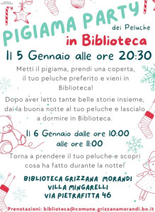 Grizzana Morandi. Pigiama Party dei Peluche in Biblioteca! Venerdì 5 gennaio ore 20.30 e sabato 6 gennaio ore 10.00