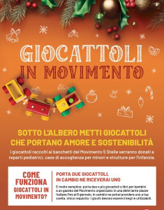 È molto semplice: puoi portare due o più giocattoli o libri per bambini a un gazebo del Movimento organizzato in una delle tante piazze italiane fino al 6 gennaio, in cambio potrai prenderne uno a tua scelta. Unico requisito: i giochi devono essere integri e utilizzabili. I regali sono un modo per rendere i bambini protagonisti e partecipi di una festa che li riguarda in modo speciale. Oltre a suscitare gioia, insegnano loro valori importanti come la generosità, la solidarietà, la speranza e la fantasia. Per i bimbi partecipare a giocattoli in Movimento sarà certamente una bellissima esperienza.