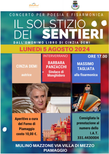 Lunedì 5 agosto a Piamaggio c/o Mulino Mazzone alle 17 si terrà “Il Solstizio dei Sentieri”