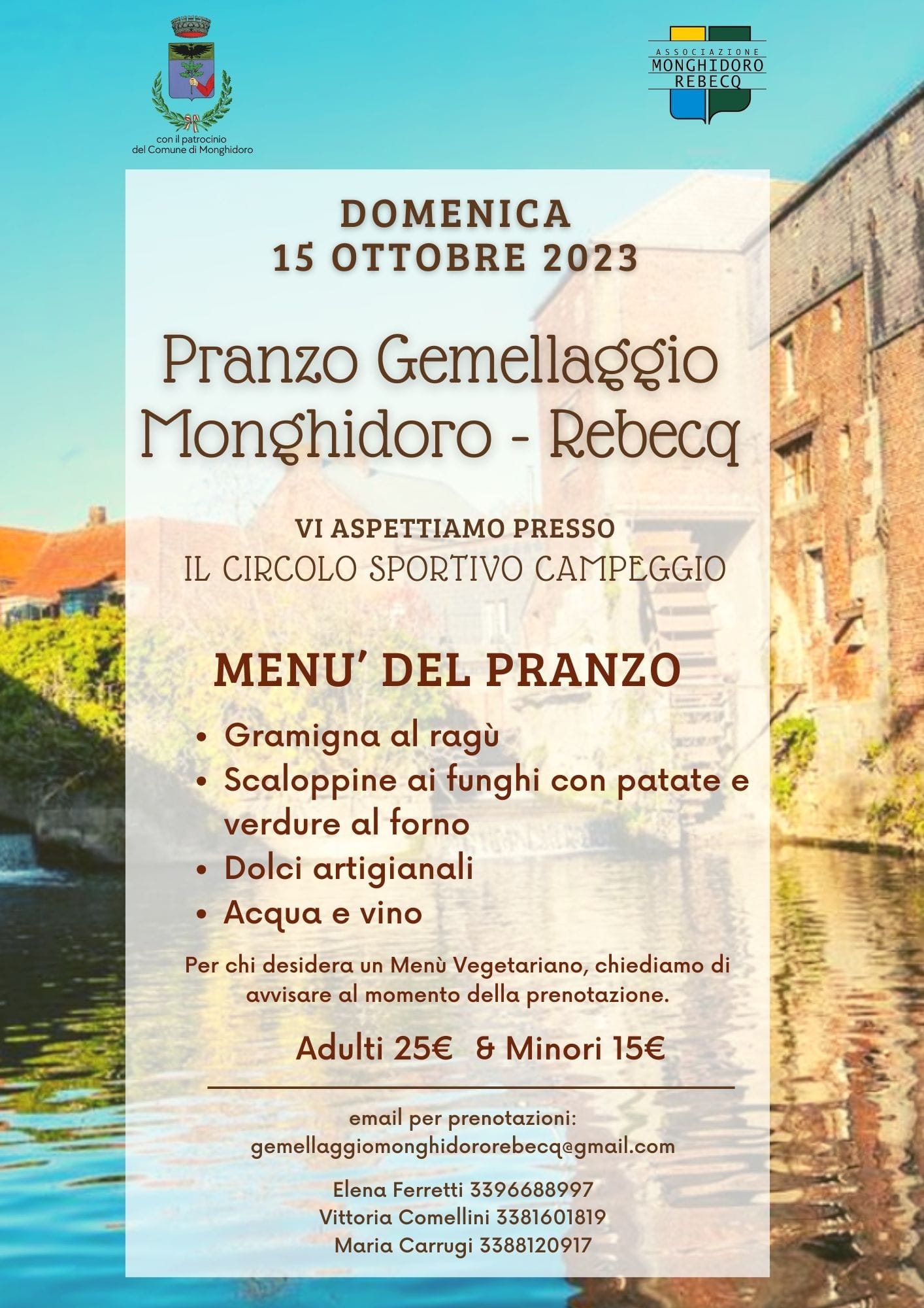 Per partecipare a questo evento straordinario, vi preghiamo di effettuare una prenotazione inviando una e-mail a: gemellaggiomonghidororebecq@gmail.com