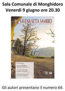 Monghidoro. Presentazione del nuovo numero di “Savena Setta Reno”, venerdi’ 9 alle ore 20.30 nella sala comunale