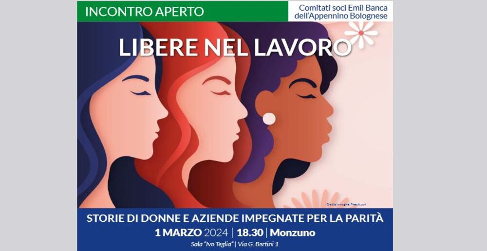 Venerdì 1° marzo a Monzuno si svolgerà l’incontro “Libere nel lavoro. Storie di donne e aziende impegnate per la parità”