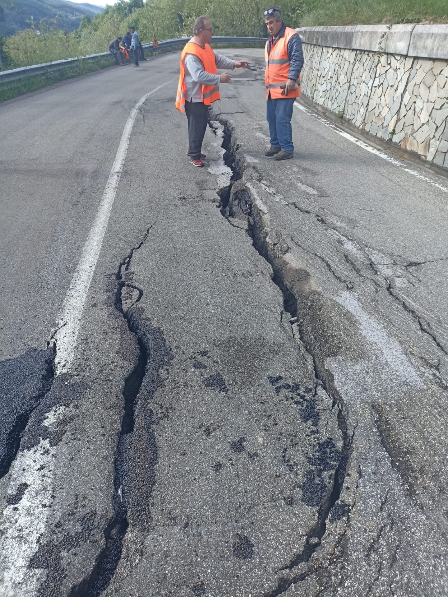 A seguito di un cedimento della strada la Prefettura ha mandato in sopraluogo un responsabile che ne ha deciso la chiusura almeno fino a domenica 7 maggio.