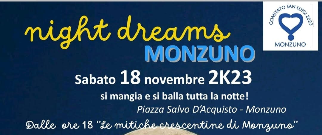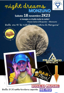 Monzuno Night Dreams 18 novembre 2023 “si mangia e si balla tutta la notte”