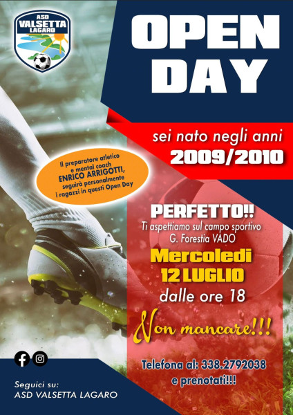 Mercoledì 12 luglio l’Asd Valdisetta Lagaro vi aspetta alle ore 18.00. Info: 338 279 2038