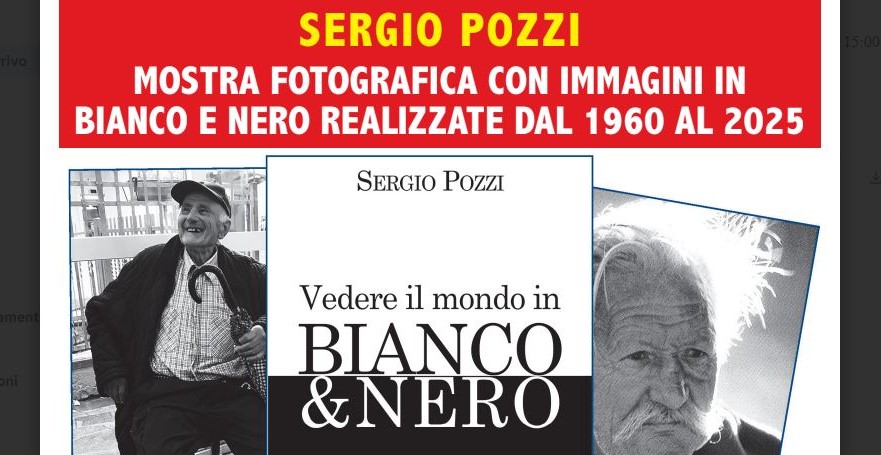 Inaugurata sabato 6 settembre alle ore 10:00, presso la sala Ivo Teglia di Monzuno, la mostra fotografica “Vedere il mondo in bianco & nero” con le immagini che Sergio Pozzi ha realizzato dal 1960 al 2025.