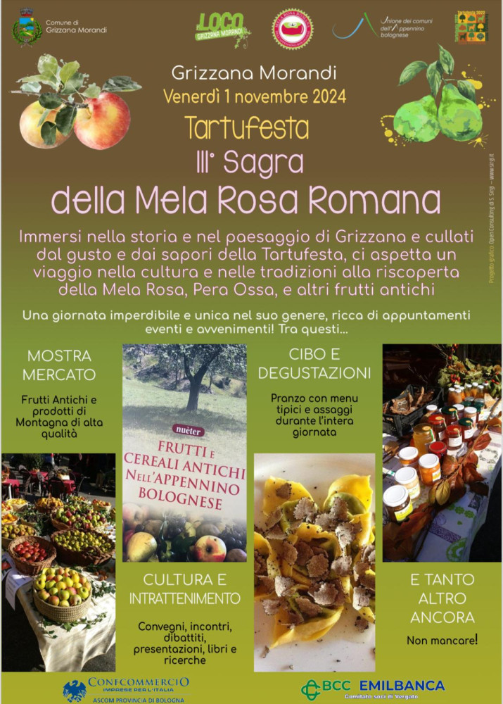 Grizzana Morandi. Tartufesta e Sagra della Mela Rosa Romana il 1° novembre per tutta la giornata