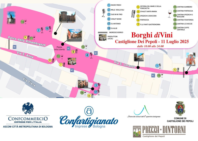 Nella splendida e unica cornice del centro storico di Castiglione dei Pepoli avrà luogo “Borghi divini”, un evento in grado di coniugare storia, bellezza e tradizione, il tutto condito con intrattenimenti musicali, enoteche e cantine, street food, specialità gastronomiche locali, mercatino, mostre d’arte e negozi aperti.