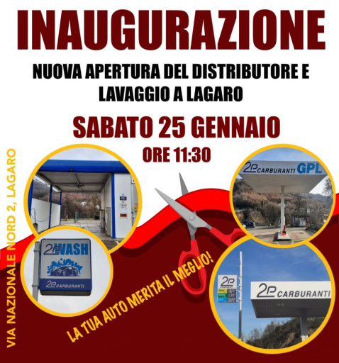 Dopo un periodo di chiusura, Sabato 25 gennaio alle ore 11.30 si festeggerà la nuova gestione del Distributore/Lavaggio auto 2P.
