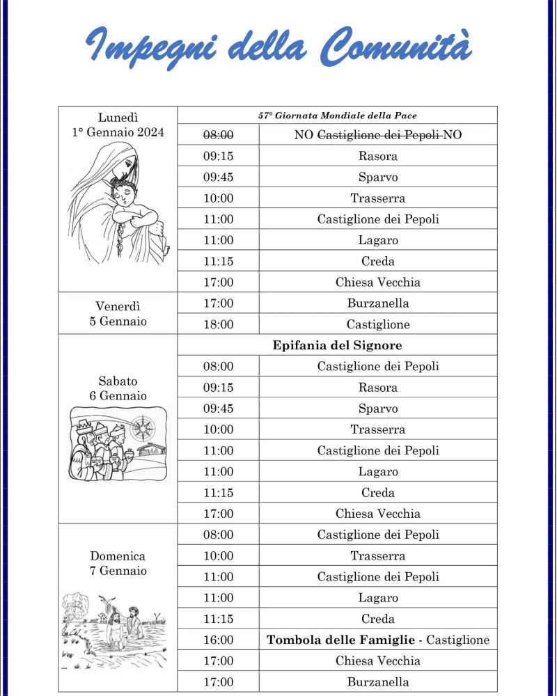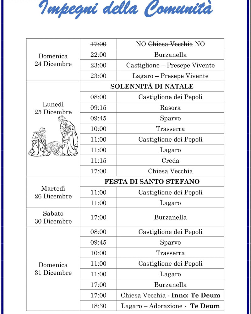 Castiglione dei Pepoli. La Parrocchia di San Lorenzo ha pubblicato gli impegni per le Festività Natalizie. Vedi allegati.