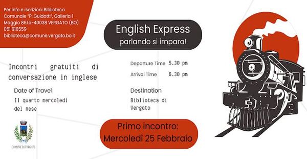 Prenderà il via in biblioteca a Vergato la nuova iniziativa gratuita dedicata alla pratica della lingua inglese parlata. Dal 25 febbraio arriverà infatti English Express – Parlando si impara!, un ciclo di incontri di conversazione pensato per offrire ai cittadini un’occasione concreta di esercizio linguistico in un contesto informale, partecipato e accessibile.