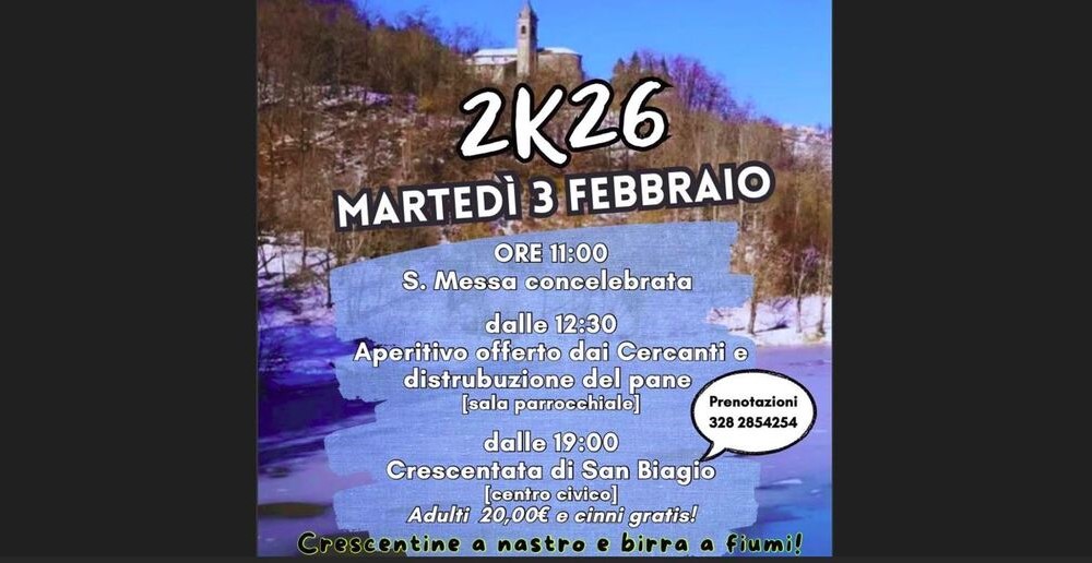 “”“In occasione della Festa di San Biagio e (Sant’Agata), patrono di Castel dell’Alpi, programmata per il 3 febbraio prossimo, la Fondazione Valentini in the World in collaborazione con ABC – Appennino Bene Culturale, ARCA, Cercanti di Castel dell’Alpi, Centro di Documentazione Pianese (storia del Monastero di San Biagio del Voglio nell’antichissima “Casa Valentini” ubicata in piazza di Piano del Voglio e in amicizia con USCA Unione Sportiva Castel dell’Alpi che ha organizzato in collaborazione con noi (sempre sulle sponde del lago di Castel dell’Alpi) il convegno/mostra “Acqua” ti invitano a partire dalle ore 11.00 con la messa concelebrata nell’omonima chiesa a presenziare al proseguimento di questa antica e tradizionale Festa lacustre.