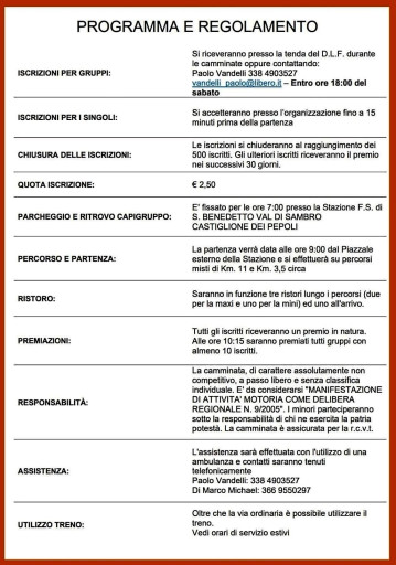 Ritrovo dalle ore 7.00 nel piazzale esterno alla Stazione Ferroviaria. Partenza ore 9.00