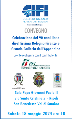 Sabato 18 maggio 2024 alle ore 10:00 presso la Sala Papa Giovanni Paolo II via Santa Cristina 5 – Ripoli, San Benedetto Val di Sambro si svolgerà un convegno dedicato alla celebrazione dei 90 anni della linea direttissima Bologna-Firenze e della Grande Galleria dell’Appennino