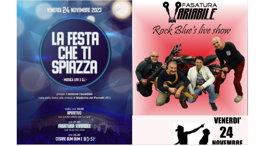 Madonna dei fornelli. 24 novembre “La Festa che ti spiazza …” Musica live con band e a seguire dj