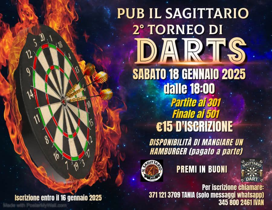 Inoltre è stato organizzato anche un torneo (il secondo), per il 18 gennaio 2025 a Montefredente presso il Pub il Sagittario. Vedi locandina allegata.