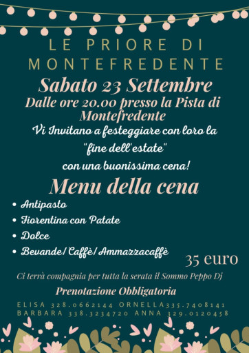 Montefredente, sabato 23 settembre, cena con le Priore per festeggiare la “Fine dell’Estate”