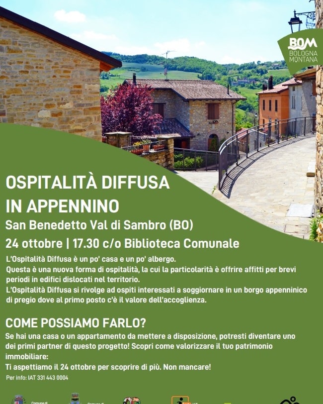 Giovedì 24 ottobre 2024 alle 17:30 presso la Biblioteca “Gastone Stefanini” di San Benedetto Val di Sambro nuovo appuntamento con il progetto Appennino Open Air – ospitalità diffusa.