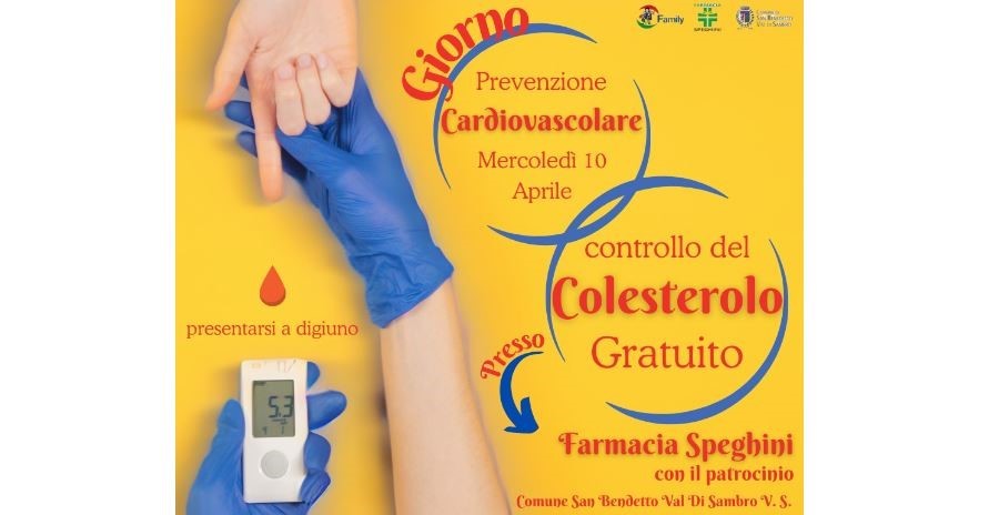 S. Benedetto Vds. Mercoledì 10 Aprile presso la Farmacia Speghni sarà effettuato il controllo gratuito del Colesterolo totale.