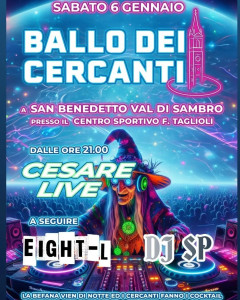 L’anno nuovo è appena iniziato e noi abbiamo già una grande notizia da darvi: San Benedetto quest’anno avrà i suoi Cercanti! Dopo qualche anno di stop ricominciano i tanto attesi balli, vi aspettiamo per la prima data questo sabato, il 6/01 per una serata in compagnia all’insegna del divertimento
