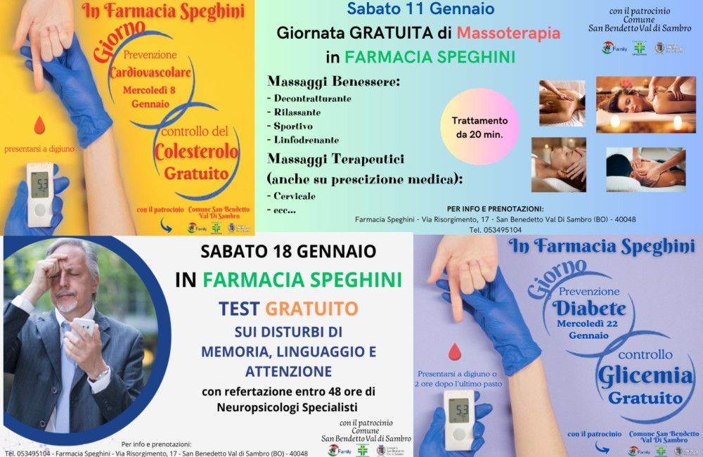 San Benedetto Val di Sambro. 4 giornate di controlli gratuiti presso la Farmacia Speghini con inizio mercoledì 8 gennaio