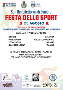 San Benedetto Val di Sambro festeggia lo sport. Il ritrovo è fissato nella giornata odierna per le 17.30, al campo sportivo Federico Taglioli dove i referenti delle realtà locali organizzeranno attività aperte a chiunque voglia partecipare. Al termine delle dimostrazioni gratuite, per la cena, ci si sposterà nella piazza dove si svolge il mercato settimanale. Molte le discipline in mostra: ovviamente calcio e volley, le più frequentate ma anche zumba, atletica leggera, basket e yoga per adulti e bambini.