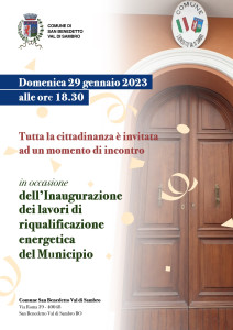 San Benedetto Vds. Domenica 29 Gennaio alle ore 18,30, inaugurazione riqualificazione energetica del Municipio