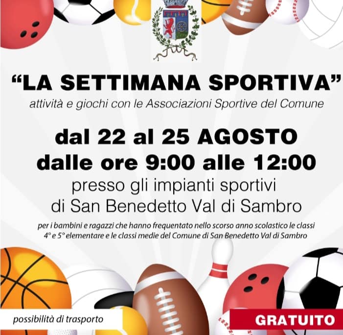 Uno dei progetti che prende vita grazie al lavoro fatto con il Consiglio Comunale dei ragazzi è “La settimana sportiva”: una settimana in cui poter svolgere vari sport con istruttori qualificati e preparati, per conoscere le varie realtà sportive del Comune ed avvicinare sempre più i giovani all’attività motoria.
