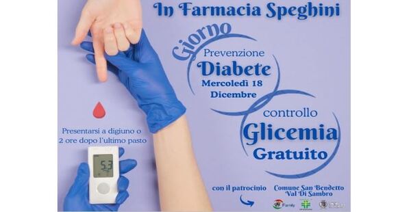 San Benedetto Vds. In Farmacia Speghini controllo GRATUITO della GLICEMIA Mercoledì 18 dicembre