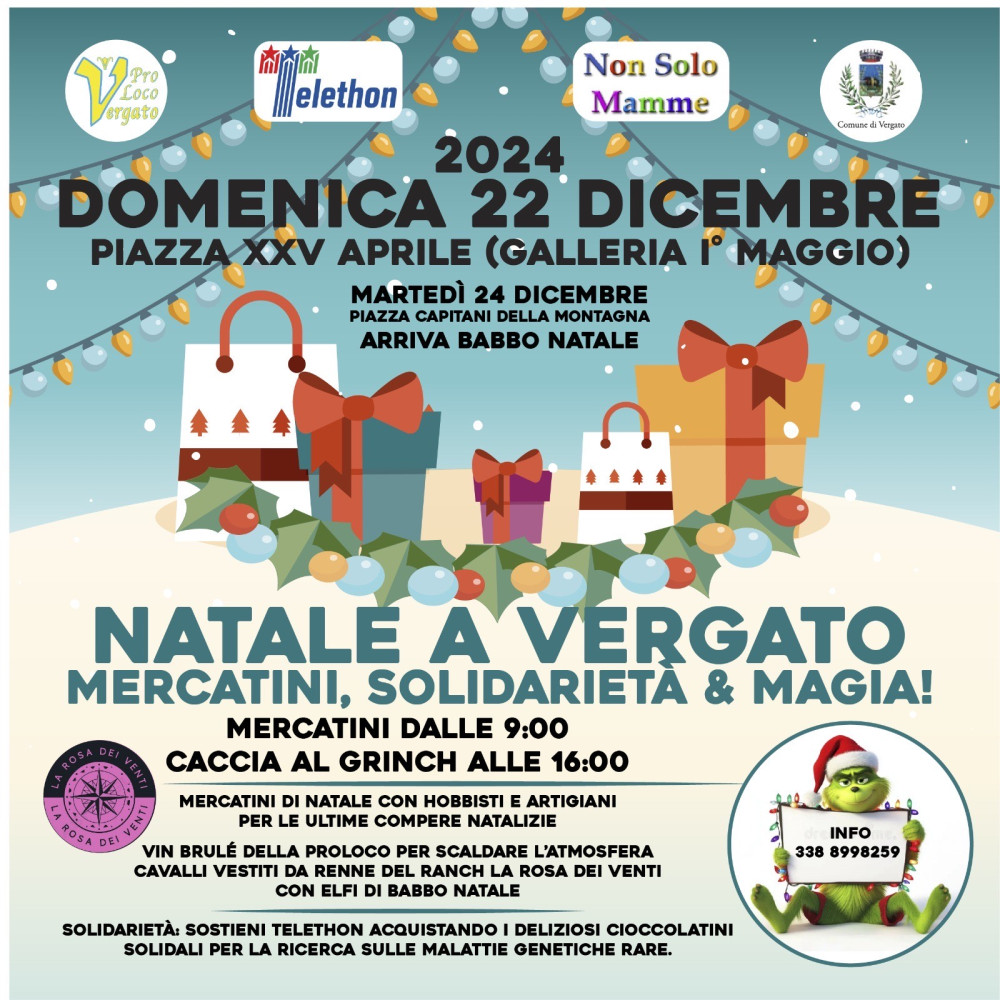 Natale a Vergato con TELETHON, Mercatini, Solidarietà e Magia domenica 22 dicembre