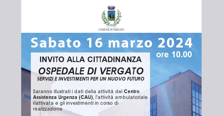 Vergato. Convegno: “OSPEDALE DI VERGATO. SERVIZI E INVESTIMENTI PER UN NUOVO FUTURO”. Sabato 16 marzo alle ore 10:00