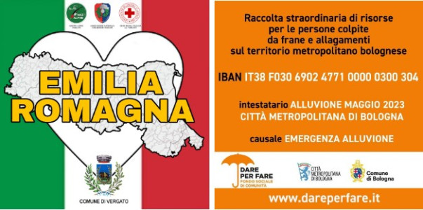 L’Amministrazione comunale di Vergato desidera ringraziare tutte le associazioni e i volontari che si stanno adoperando in prima persona da giorni e tutte le persone che, attraverso una spesa o una donazione, daranno un aiuto concreto a sostegno delle popolazioni colpite.