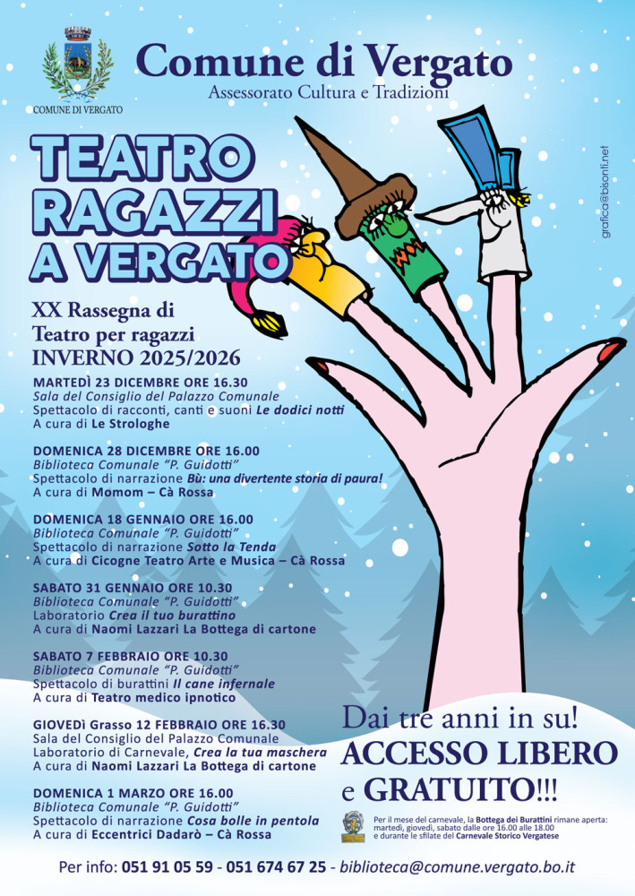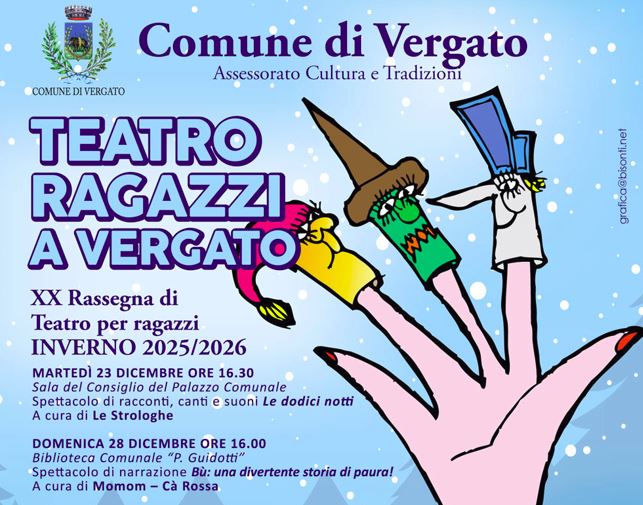 Vergato. Teatro per ragazzi, da dicembre a marzo arriva la rassegna invernale. Il via il prossimo ๐๐ ๐๐ข๐๐๐ฆ๐๐ซ๐ Vedi locandina in allegato