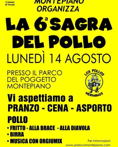 A Montepiano di Vernio il 14 agosto “Sagra del Pollo”